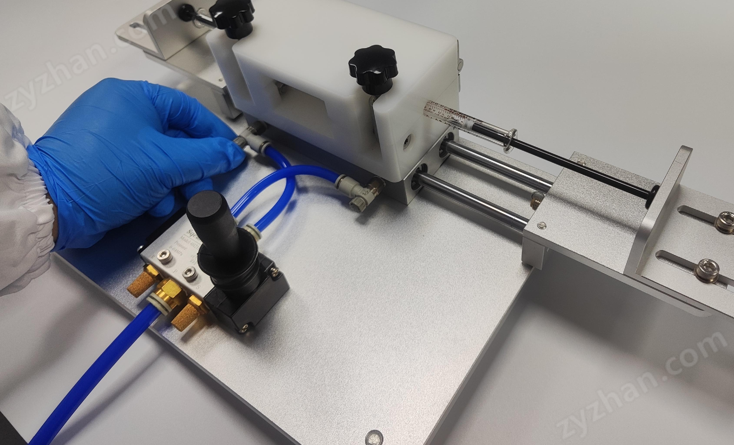 The ATS pneumatic stent is compatible with the popular liposome extruder LF-1, improving operational convenience and accuracy through pneumatic pressurization. This device solves the problems of traditional manual extrusion labor, uncontrollable pressure, and difficulty in amplification, providing uniform thrust and precise pressure adjustment functions, making the experimental process easier and more efficient.