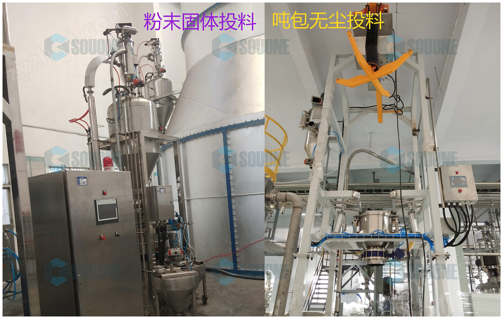 2. Vacuum conveying feeding: The vacuum conveying closed feeding device above transports the material in a closed manner to the reaction stage through negative pressure airflow;