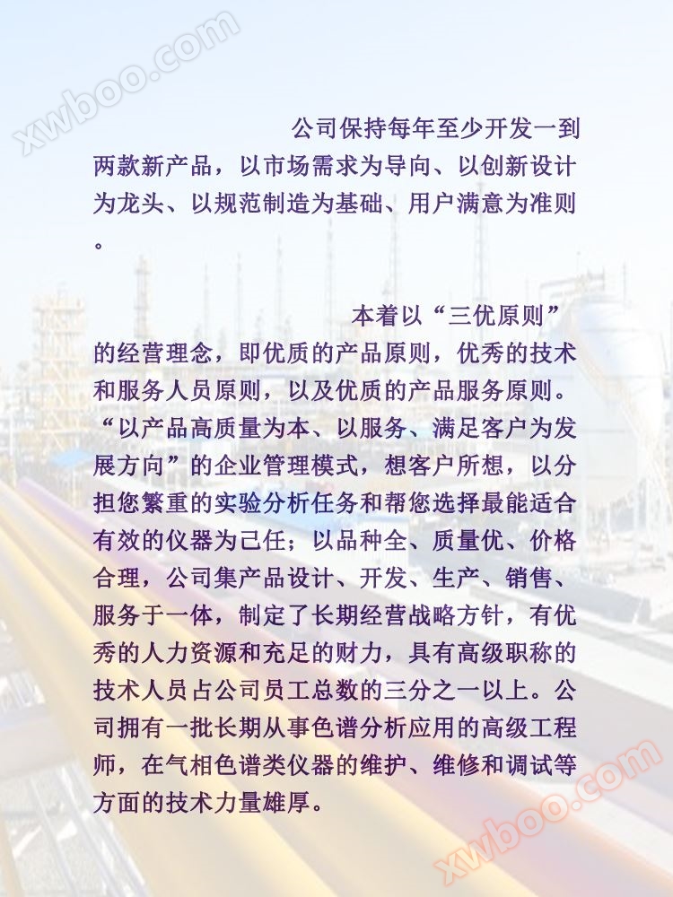 3. Simply put, machinesSimple operationStable and reliable, with short start-up and stabilization time, breaking through the long waiting time of traditional chromatographs. It can automatically remember operating parameters and does not require resetting when starting up.Equipped with a gas cut-off protection system to prevent instrument damage caused by misoperation. Modifications have been made to the gas circuit, and the system has adopted a high-precision valve structure, greatly improving the stability of the instrument's gas velocity and obtaining well reproducible analysis results, saving users the trouble of modifying parameters.
