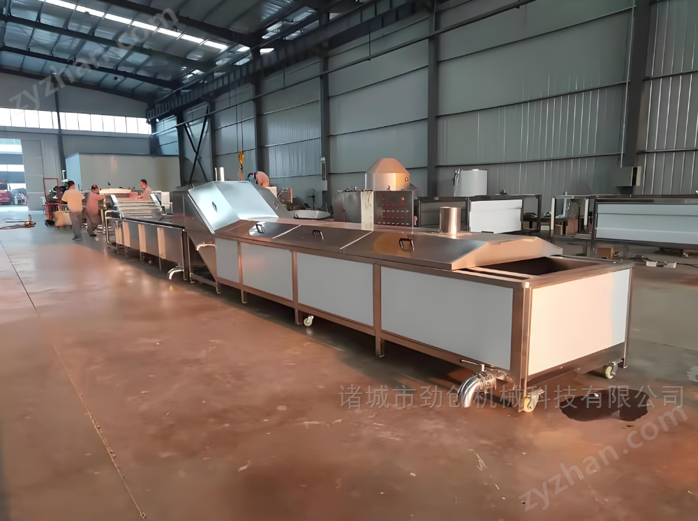 Continuous cooking and cooling machineAfter steaming, the material can be quickly cooled by connecting to a cold water tank to ensure that it meets the processing requirements. It can also be equipped with a vibrating drain machine to remove all water stains on the material, and a drying conveyor line can be configured for direct drying treatment. It can also be equipped with a dividing device for cutting and processing. We provide customized services and welcome customers to call our factory for consultation, inspection, and guidance!