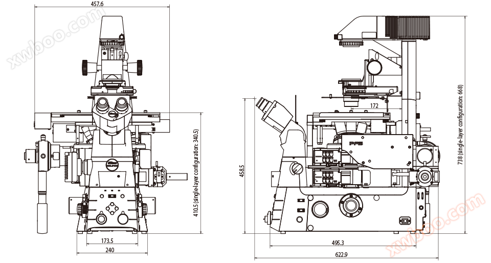 Even in extended configurations, the highly stable Z-axis focusing mechanism remains adjacent to the objective disc