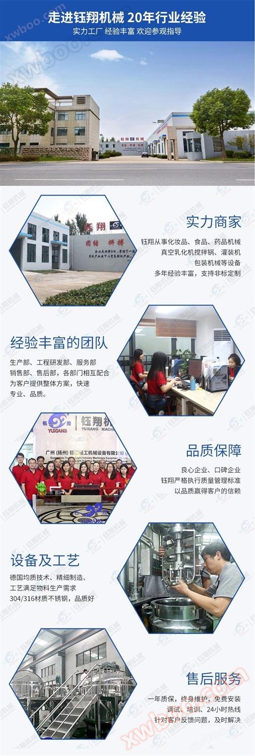 Our company produces a variety of vacuum homogenizers and emulsifiers, including upper homogenization, lower homogenization, internal and external circulation homogenization for the homogenization system, and unidirectional and bidirectional stirring for the stirring system, as well as screw belt stirring; The lifting system is divided into single cylinder and double cylinder lifting, and various products that meet customer requirements can be customized;