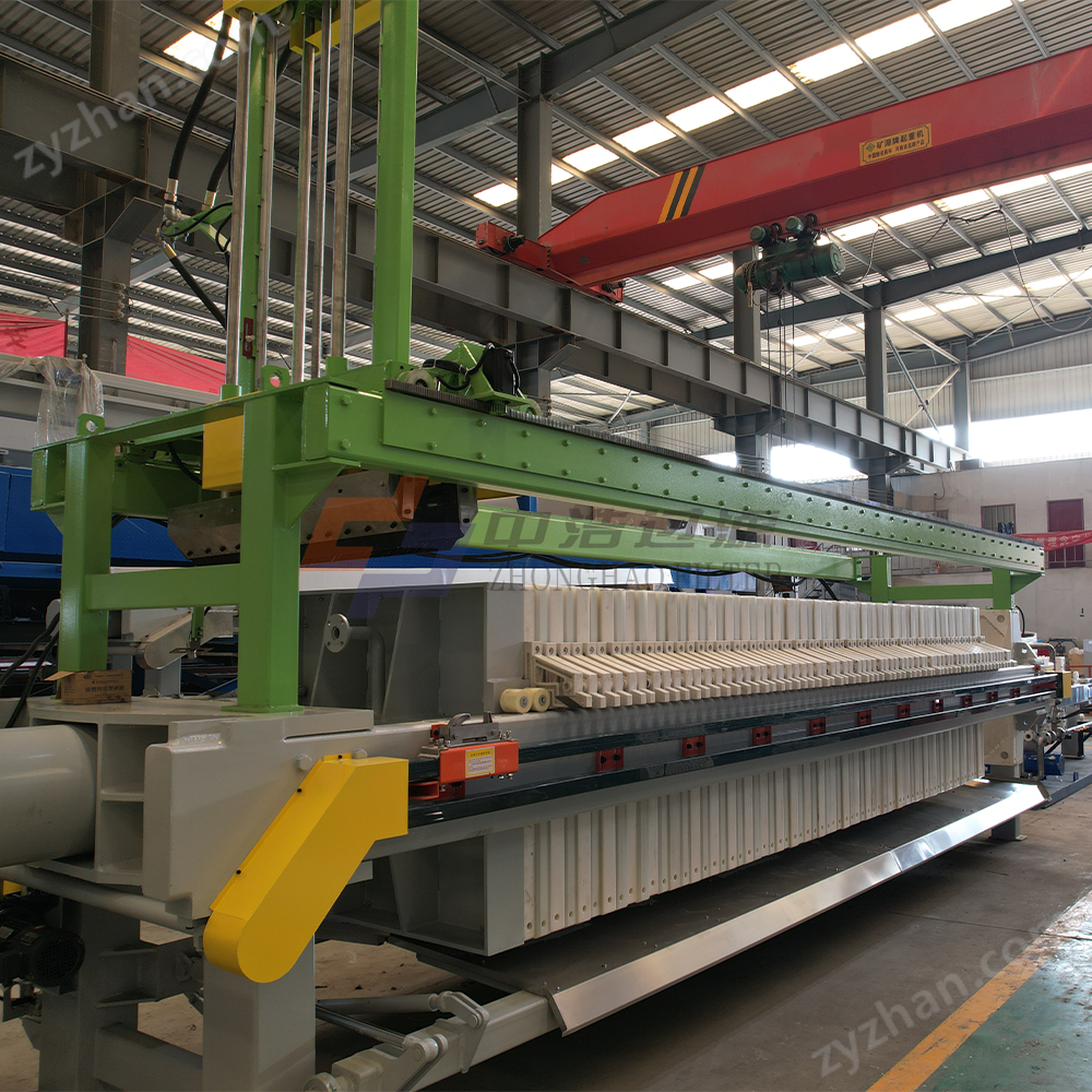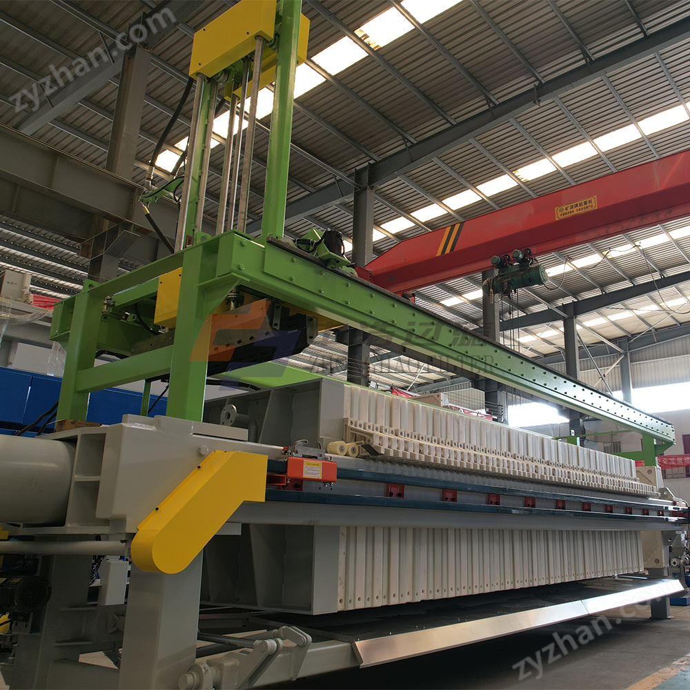 Automation of the plate pulling process: The plate pulling cart drives the filter plate to move through the chain, and automatically releases it when it is in place, switching to the next filter plate until all filter plates are pulled apart and the filter cake is unloaded.