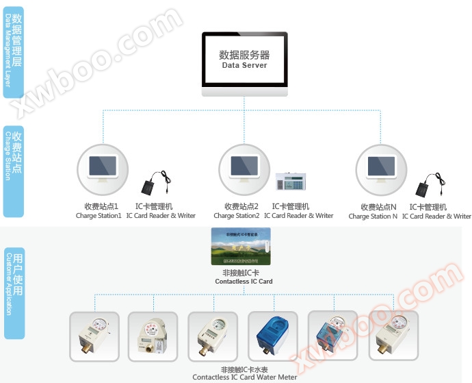 - IC card serves as a data carrier to achieve automatic charging function;