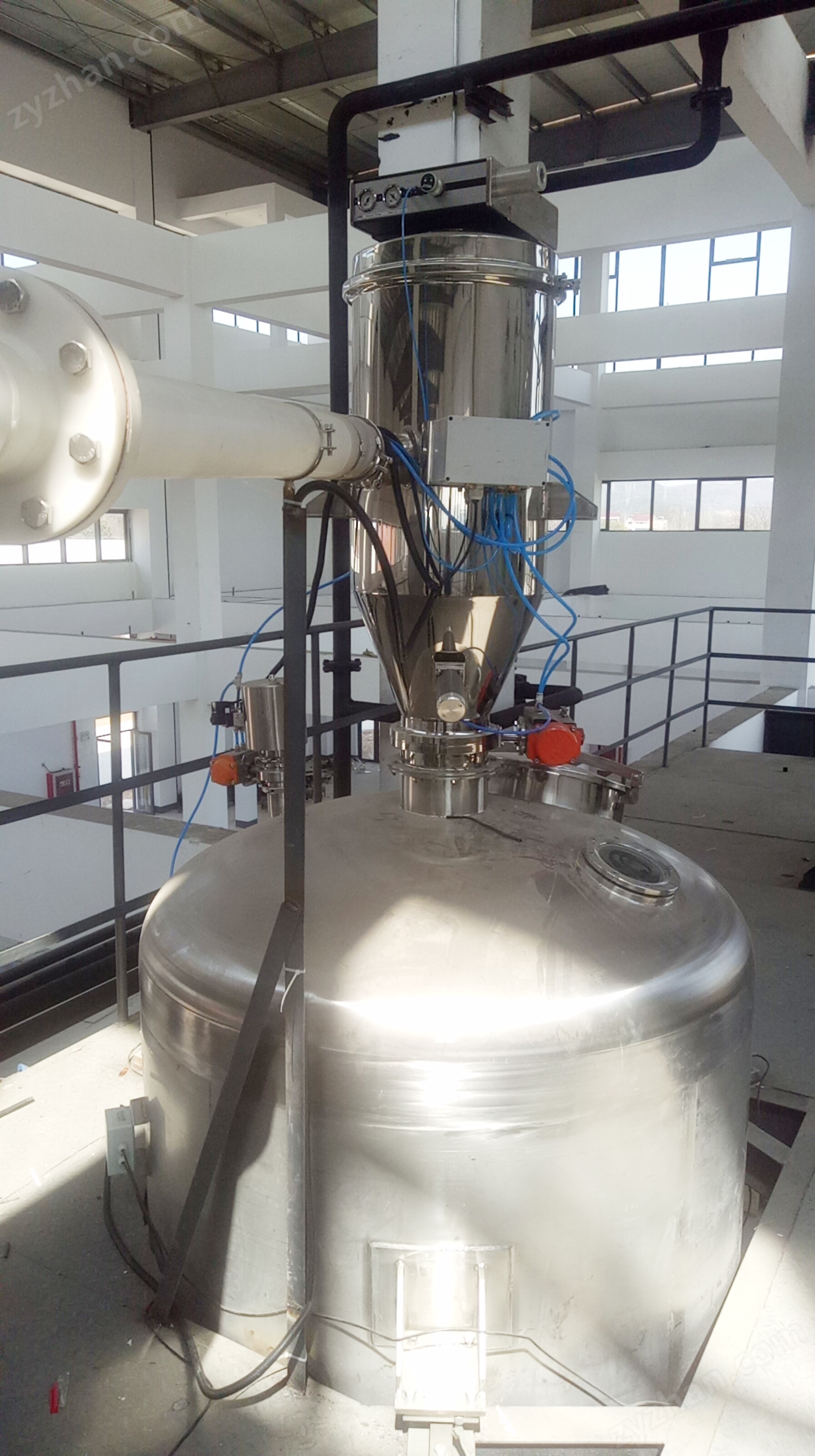 For materials with extremely poor fluidity (such as ultrafine powders), compressed air can be used to blow the material from the measuring bin into the reaction kettle, while turning on the circulating fan inside the kettle to avoid material deposition.